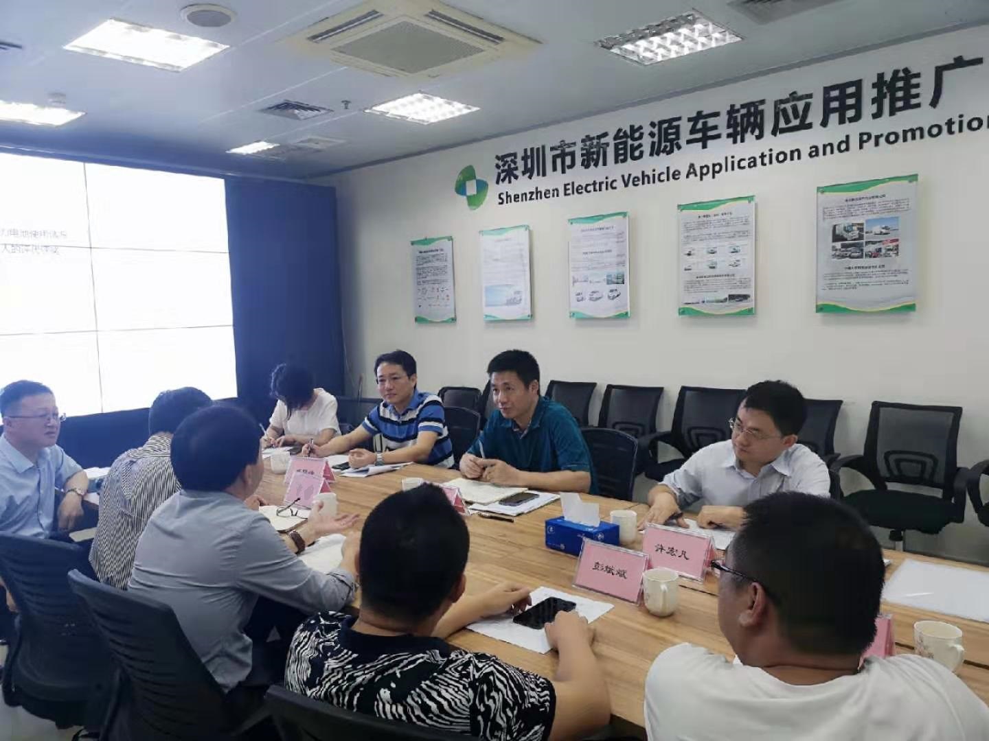 2019年7月12日,深圳市生态环境局副局长卢旭阳率队来深圳市新能源车辆应用推广中心,对深圳新能源汽车推广应用情况进行调研,市生态环境局综合执法支队机动车排放监管处副处长张俊峰、市生态环境局大气环境处主任科员许宏凡、市生态环境局综合执法支队机动车监管处工作人员刘群陪同调研。推广中心常务副理事长徐川、副主任王向山进行接待。